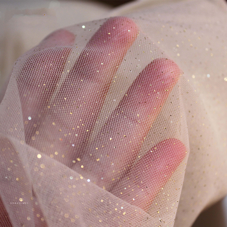 Eco Friendly Double Face Metallic Gold Yarn Jacquard Luxury Glitter Tulle Fabric